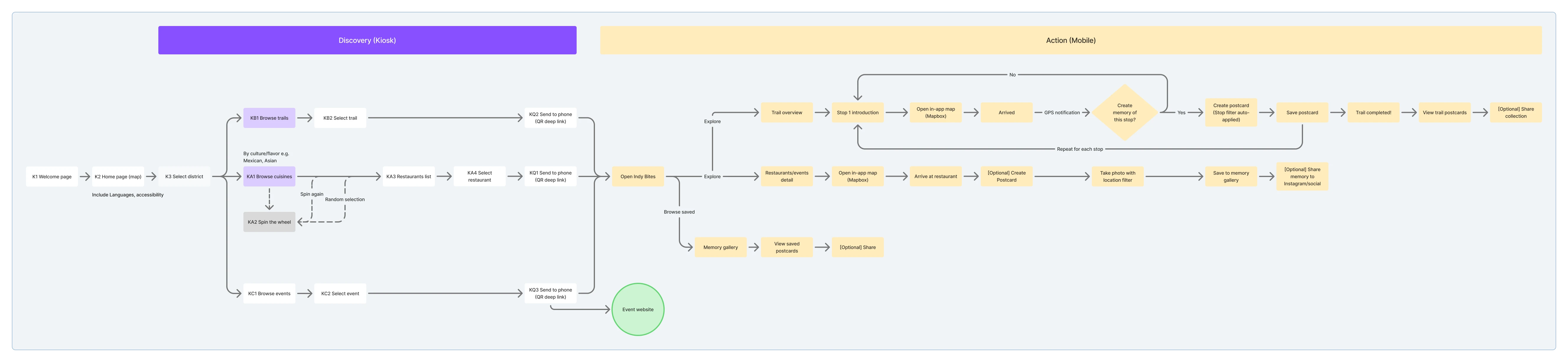Rather than designing another restaurant discovery app, we focused on creating a connected ecosystem that meets people where they already are in downtown Indianapolis, and guides them through intentional cultural exploration.