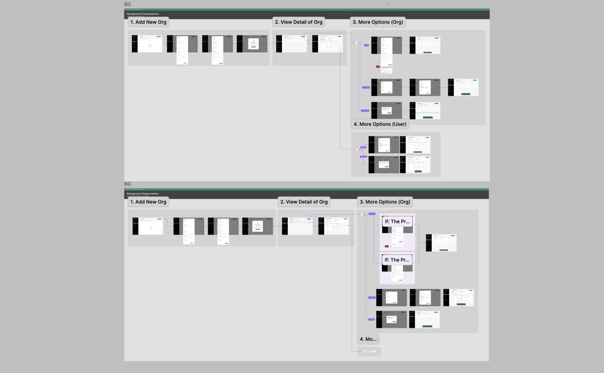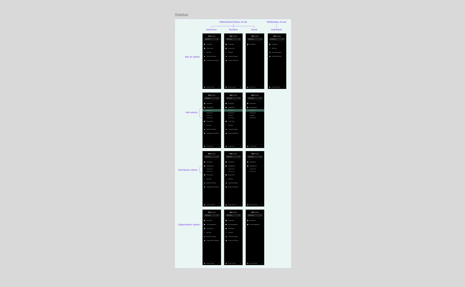 Mapped the IA across user roles and identified what each type needed to access. When early wireframes felt too dense, I restructured the flows into clearer sequential steps and designed a modular sidebar that surfaced only role-relevant tasks, reducing complexity and improving navigation consistency.